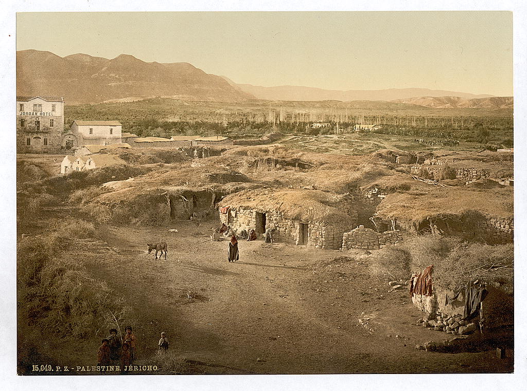 - 耶利哥靠近耶路撒冷,尤其是在节期,许多上耶路撒冷守节的人都会经过这儿。当时耶利哥有新、旧二城,旧城是被咒诅的废墟(书六26),新城是大希律王所建,两城之间有一条道路相通。所以《马太福音》和《马可福音》都记载是「他们出耶利哥的时候」(太二十29;可十46),也就是出了旧城以后;而《路加福音》则指出是「将近耶利哥的时候」(35节),也就是进入新城之前。
